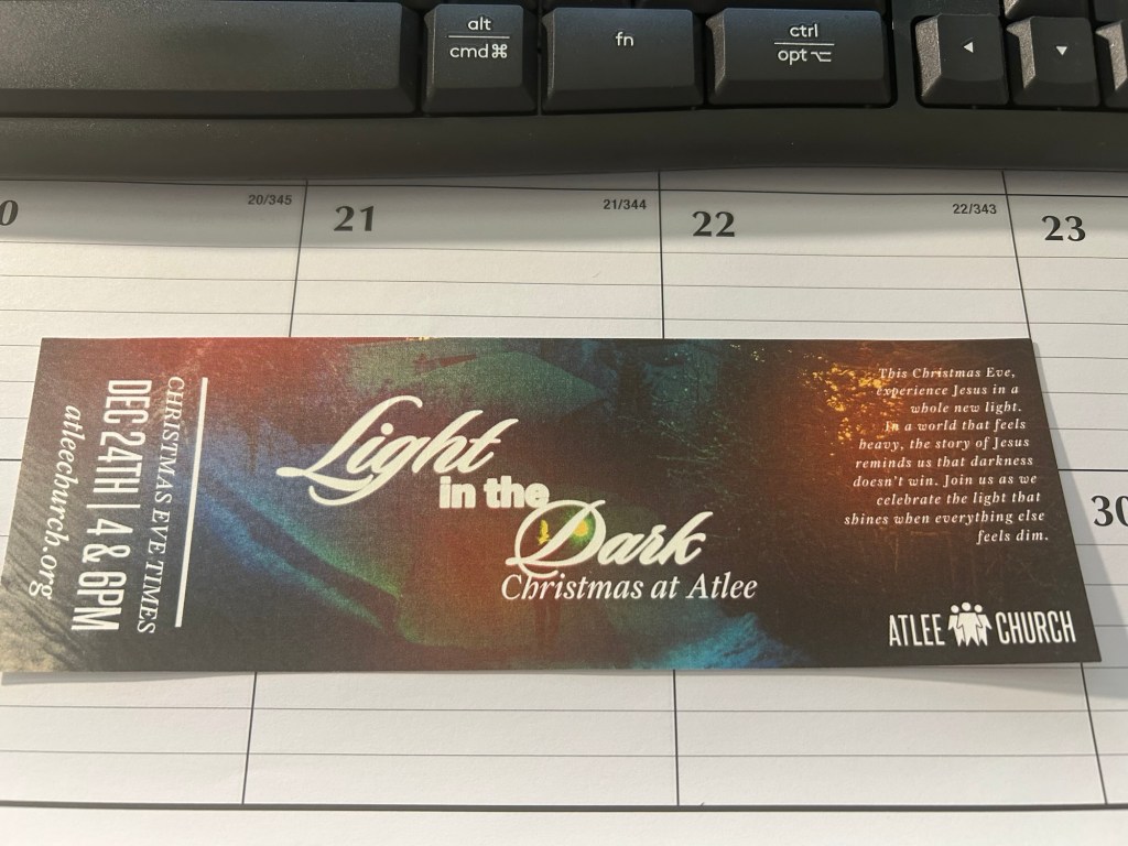 And to top it off another coworker stopped by to bring me something I ordered for my office space and in talking to me said “I have something for you”. She came back with an invitation to her church on Christmas Eve. Am I going? Absolutely! Why? Because I refuse to miss an opportunity to hear from God and the message He delivers through people He send my way.